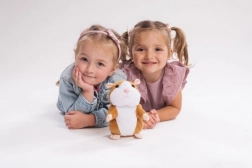 Hamsteren Mireček kombinerer et charmerende design med taleevnen, hvilket gør den til en perfekt kælebamse for børn.