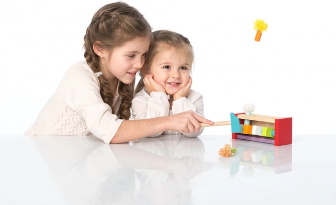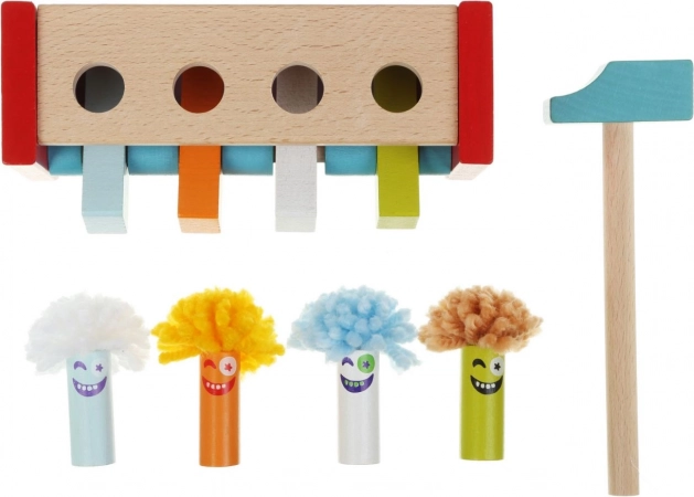 Dette kvalitetslegetøj i træ giver børn glæden ved at opdage årsag og virkning. Hvert slag med hammeren sætter mekanismen i gang, og en glad klovn springer op – en enkel, men fascinerende effekt, der motiverer til gentagelse og forbedring.