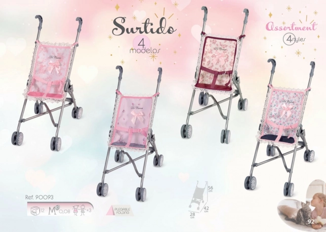Denne sammenklappelige klapvogn af typen “golf-paraply” fra kollektionen DeCuevas udmærker sig ved smukt spansk design, præcis udførelse og meget enkel betjening. Med en højde til håndtaget på 56 cm er den et godt valg for mindre piger, som vil køre deres yndlingsdukker sikkert og komfortabelt.