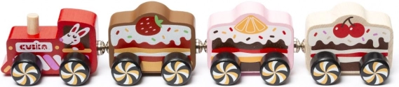 Vogne i stil med jordbær-, citron- og kirsebærkage stimulerer fantasifuld leg og gør toget til et attraktivt legetøj.
