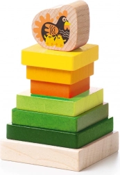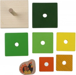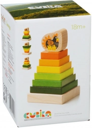 Farverig træpyramide med høne CUBIKA – 8 dele
