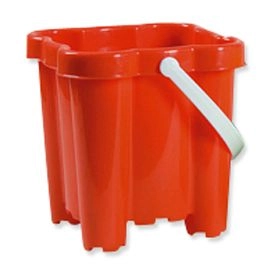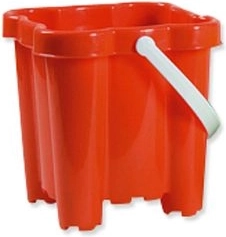 Holdbar italiensk Androni-spand i slotsform med 4 tårne, højde 16 cm. Kvalitets fleksibel plast, let, egnet fra 12 måneder. Ideel til sandkasse og strand.