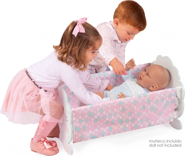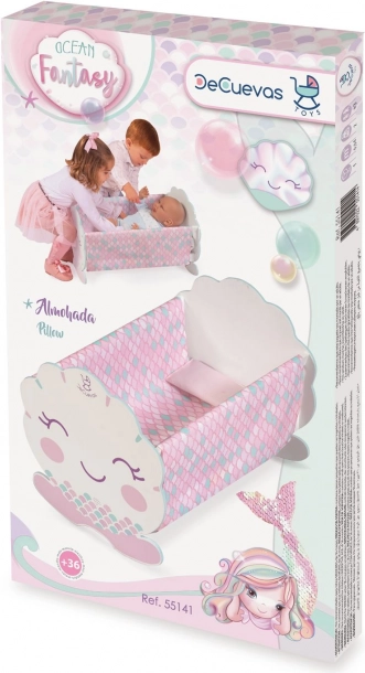 Den søde trævugge til dukker fra OCEAN FANTASY-kollektionen charmerer med blide pastelfarver og motivet af en lille havfe. Den byder på kvalitetsarbejde, stabil konstruktion og spansk design. Der medfølger en lyserød pude, som giver ekstra komfort til dukken. Et ideelt tilbehør til pigeværelset til kreativ leg og pasning af dukker.