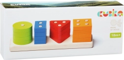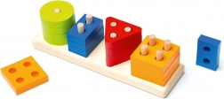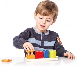 \nDette kvalitets-træpuslespil tilbyder 16 farverige geometriske former, der sættes på tapper på en rektangulær base. Når de leger, lærer børn at genkende farver og former, afprøver forskellige kombinationer og træner naturligt både koordination og tålmodighed.