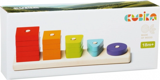 Træpuslespillet CUBIKA giver en sjov måde at introducere barnet til former og farver. På den solide firkantede base med pinde trækker børn 15 farvede perforerede brikker på – cirkler, trekanter, firkanter og andre enkle geometriske former – og øver samtidig naturligt hånd-øje-koordination og koncentration.
