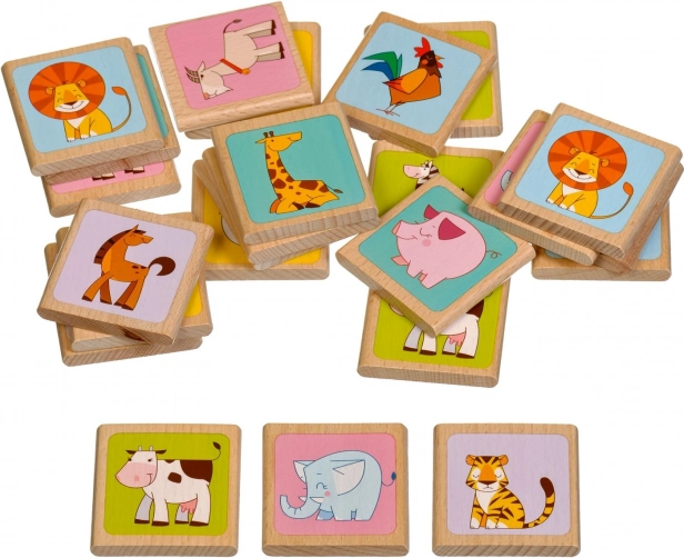 Træ-pexesoet Dyr fra mærket LUCY & LEO indeholder 12 par farverige billeder af populære dyr. Hvert kort har en rar størrelse, er let for små hænder at holde om og holder til hyppig leg takket være kvalitetstræ. Ideelt til de første huskespil, hyggestunder med forældre og selvstændig udforskning.