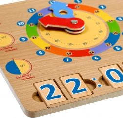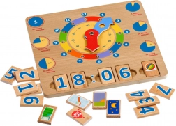 Den træbaserede læreplade fra Lucy & Leo hjælper børn på en sjov måde med at forstå, hvordan tid fungerer. Den indeholder store farverige visere, indsatte klodser med tal samt billeder af aktiviteter, så børnene nemt lærer at genkende klokkeslæt og tidsintervaller. Ideel til førskolebørn og yngre skolebørn, som gennem leg udvikler logisk tænkning, finmotorik og tidsfornemmelse.