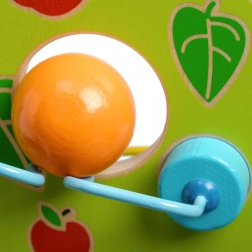 Kuglernes bevægelse ledsages af en behagelig “klikken”, som motiverer til at prøve igen og igen og udvikler sanseopfattelse og koncentration.