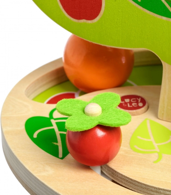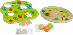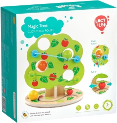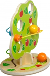 Den designmæssigt attraktive kuglebane formet som et træ tilbyder flere kaskader af skinner på siderne. Læg blot en af de glatte, store trækugler på toppen og se den rulle ned, give en rytmisk “klikken” og stoppe ved træets fod. Legetøjet er ideelt til aktive børn, der elsker bevægelse, lyde og at udforske årsag og virkning.