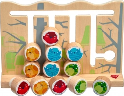 Oplev det sjove træmotoriske spil fra Lucy & Leo, som udvikler finmotorik, logisk tænkning og farvegenkendelse. Børn flytter farverige fugle og katte i slidserne efter de medfølgende kort med skabeloner – læring bliver til leg.