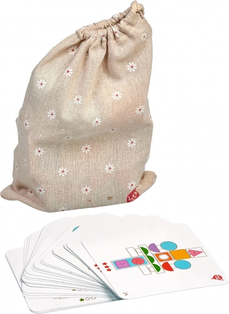 Sættet indeholder 24 kort med varierende sværhedsgrad. Børn træner præcision, planlægning af trin og visuel skelnen mellem former og farver.
