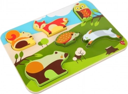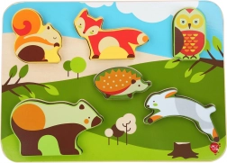 Den glatte og solide plade med skovillustrationer hjælper børn med korrekt parring, mens de store og tydelige former støtter øje–hånd-koordination og rumlig orientering. Den enkle opstilling af motiverne fastholder opmærksomheden og styrker selvtilliden ved succesfuld lægning.