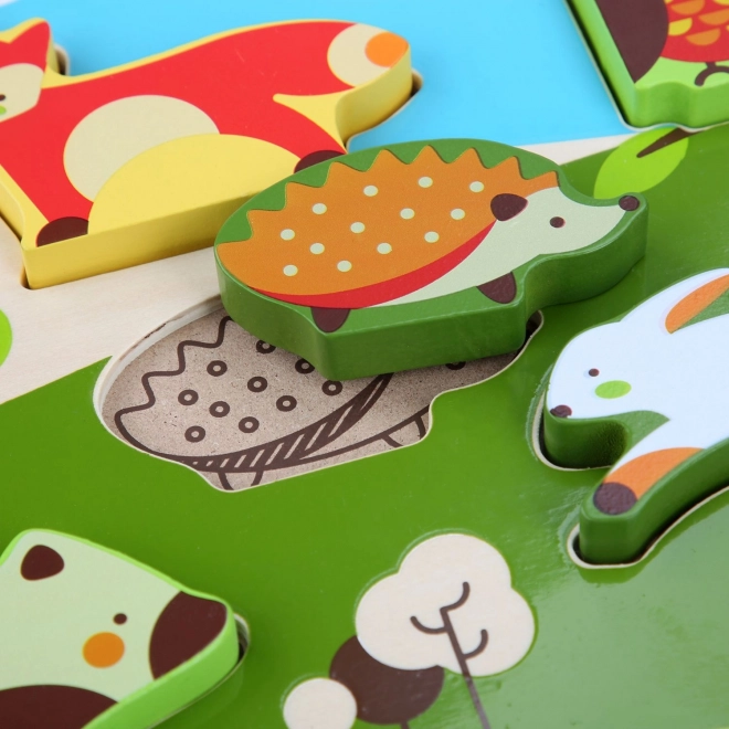 Oplev et sjovt træpuslespil med skovdyr, der udvikler børns færdigheder. Brikkerne er store og lette at gribe om, så de er perfekte til små hænder. Puslespillet styrker finmotorik, formgenkendelse og tålmodighed, mens den høje trækwaliteit og de smukke illustrationer sikrer lang holdbarhed og masser af legetid.