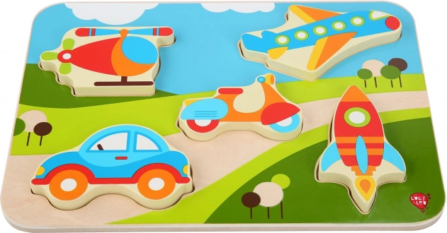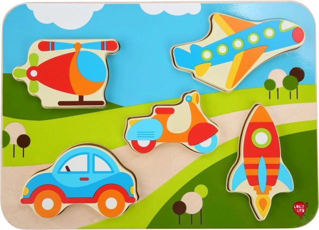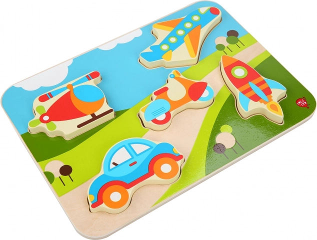 Opdag et sjovt træpuslespil med køretøjstema, der udvikler finmotorik, øje–hånd-koordination og formgenkendelse. De store, farverige brikker er lette for børn at holde om og sætte i de rigtige udskæringer. Et ideelt første puslespil for små entusiaster af biler, fly og andre transportmidler.