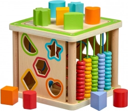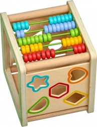 Indsættelse af geometriske former udvikler logik og formgenkendelse, mens kuglerammen understøtter de første regnefærdigheder og arbejde med farver.