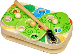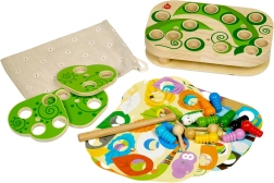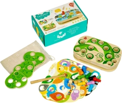 Den sikre magnetiske stav hjælper børn med at fange farverige larver i hullerne. Udvikler finmotorik, koordination og tålmodighed.