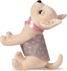 Hunden har en dragt med velcrolukning og en dekorativ sløjfe under halsen, hvilket øger den samlede attraktivitet. Den er velegnet til børn fra 3 år. Materialerne, der er brugt i produktionen, omfatter plys, tekstil og plast, hvilket gør legetøjet både behageligt at røre ved og let at vaske ved 30°C.
