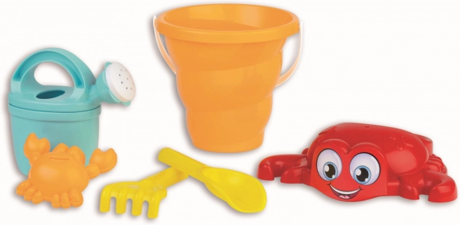 Vi præsenterer et 6-delt sæt til sand, som vækker legene på stranden eller sandkassen til live. Sættet består af en spand, der minder om en muslingeskal, en si med et motiv af en glad krabbe, en form i krabbeform, en praktisk vandkande, en skovl og en rive, hvilket sikrer timer med kreativ sjov for dine børn.