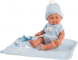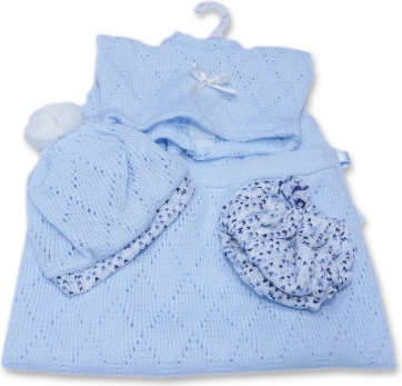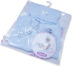Outfittet til babydukke i størrelsen 26 cm inkluderer en lille sweater, en hue og trusser. Det er designet til at bringe maksimal komfort og elegance ind i dukkelegen. Pakken indeholder også et fint strikket tæppe, der fuldender det samlede look. Sættet er pakket i en gennemsigtig emballage med plastik- eller papbøjle.