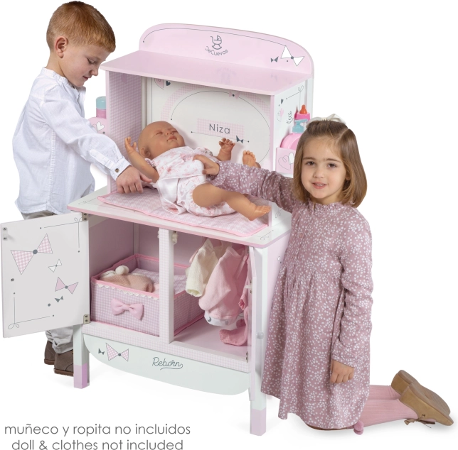 Takket være præcist spansk design og omhyggeligt udvalgte materialer virker skabet let og rent. De praktiske mål sikrer stabilitet og god plads til alt nødvendigt udstyr til pleje af dukker op til 45 cm.