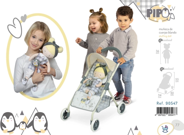 DeCuevas Sportsvogn til dukker med plysdukke PIPO 2022 er en del af den nye kollektion for 2022, som bringer kvalitets- og stilfulde tilbehør til kommende husmødre. Denne barnevogn er karakteriseret ved sit elegante spanske design og præcise udførelse. Den er let at håndtere, hvilket du vil sætte pris på både under leg og opbevaring.