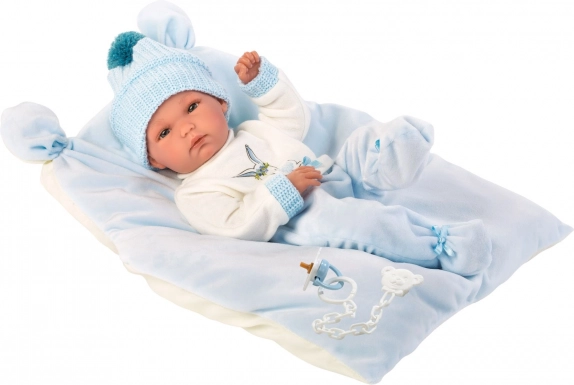 Dukketøj til dukke fra New Born kollektionen er ideel til dukker i størrelse 35-36 cm. Dette charmerende sæt tøj inkluderer 3 dele og en pude, der kan bruges som underlag. Fremstillet i Spanien og pakken inkluderer en plastik eller papbøjle. Velegnet til børn fra 3 år.