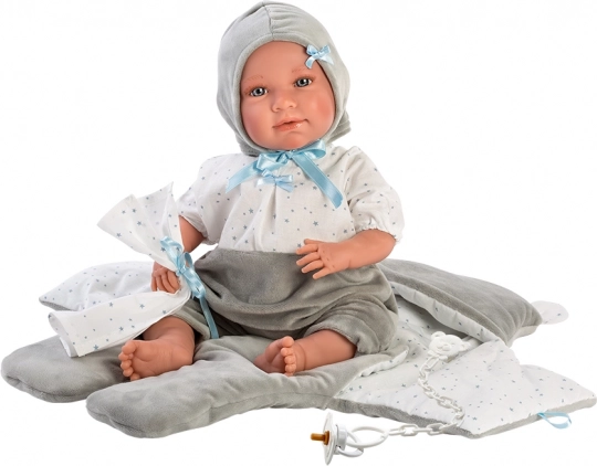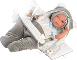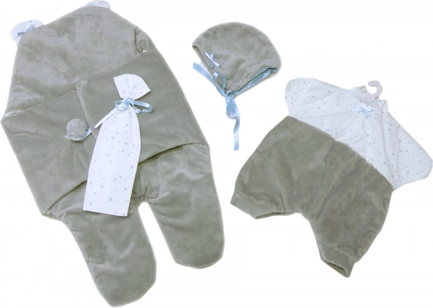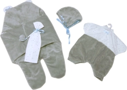 Dette charmerende tøjsæt er et perfekt valg for alle små mødre, der vil klæde deres dukker stilfuldt og komfortabelt. Det indeholder et velour-hurtigsvøb, som giver komfort og varme til dukken, især under kørsel i autostol. Der medfølger også et dekorativt lommetørklæde, som fuldender looket.