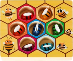 Uddannelsesspil Bistik Montessori støtter udviklingen af motoriske færdigheder og børns selvstændighed. Indeholder en base af massivt træ og syv farverige bier, som børn placerer i de tilsvarende huller med den medfølgende røde plastpincet.