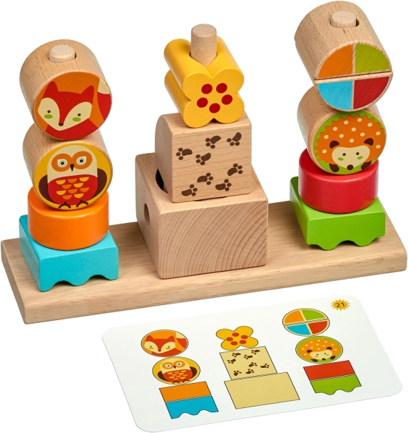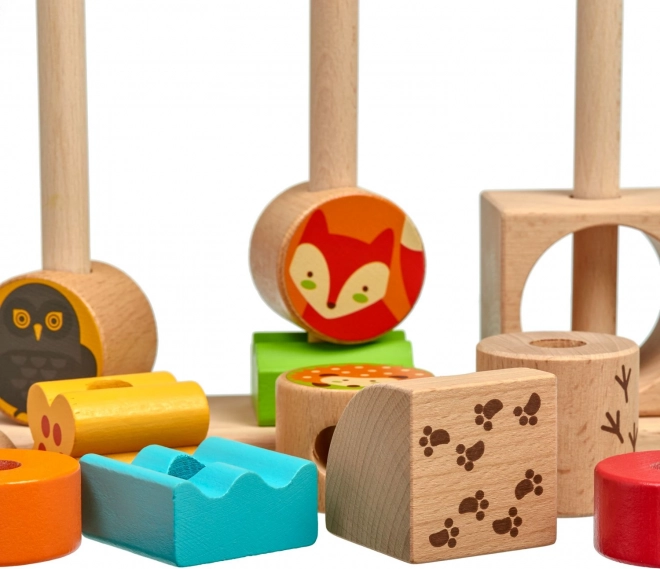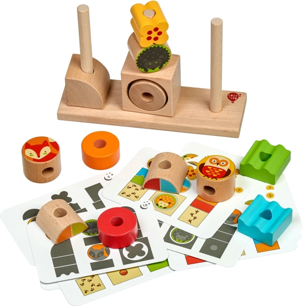 Klodser med skovdyr og farverige geometriske brikker fastholder børns opmærksomhed og stimulerer fantasien. Ideelt til kreativ byggen og fri leg.