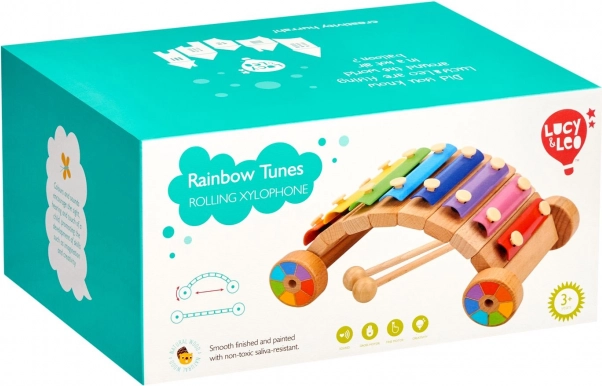 Regnbue-xylofonen LUCY & LEO kombinerer musikinstrument og rullende legetøj i ét. Metalplader i regnbuefarver indbyder til de første melodier, mens den solide træbase med hjul understøtter aktiv leg. Børn lærer naturligt at skelne toner, fornemme rytme og udvikle hånd-øje-koordination.