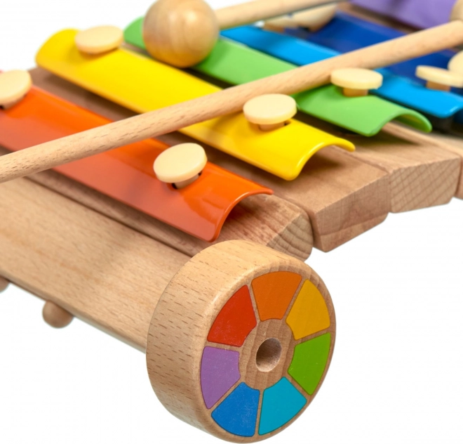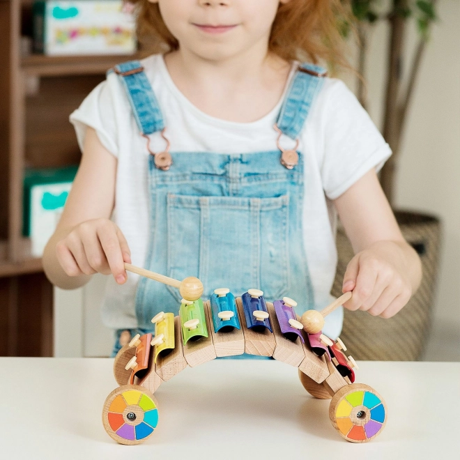 Træchassiset med hjul gør det muligt at trække eller skubbe xylofonen, så musiklæring bliver endnu sjovere.
