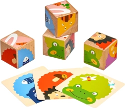 Oplev magien ved de første puslespil med LUCY & LEO – træbilledklodser med dyr og deres lækkerier. Børn kan dreje de fire klodser og efter kortene eller deres egen fantasi samle 6 forskellige motiver. På en sjov måde træner de finmotorik, visuel genkendelse og logisk tænkning.
