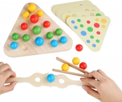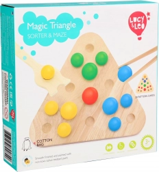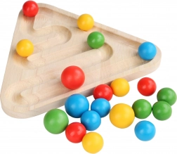 Oplev kreativ leg og læring i ét. Den trekantede, dobbeltsidede træplade byder på to aktiviteter: sortering af farvede kugler efter 20 forlæg med den medfølgende pincet og ske, samt en dynamisk labyrint, hvor børnene øver både tålmodighed og præcision. De farvede kugler opbevares efter legen i linnedposen, så alt er samlet.