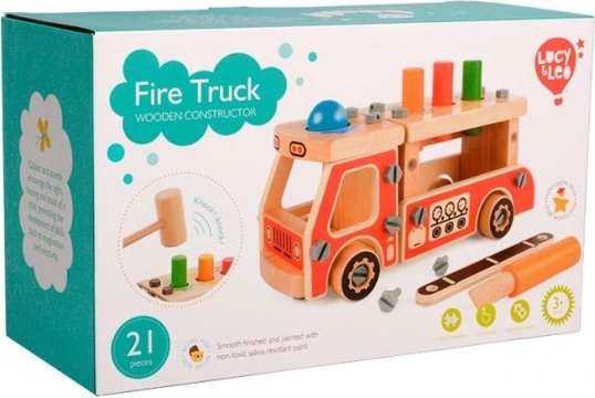 Byg din egen træbrandbil og udvikl færdigheder med Montessori-konstruktionssættet LUCY & LEO. Børn vil elske at banke farvede pinde i med hammer, skrue og samle af 21 dele, mens de træner finmotorik, hånd–øje-koordination, farve- og formgenkendelse samt tålmodighed. Sikker ikke-giftig maling og robust træ sikrer langvarig leg.