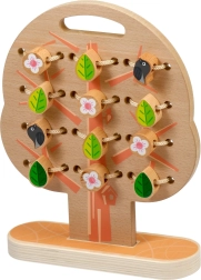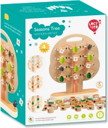 Opdag det kreative montessori-legetøj Lucy & Leo træ snørestativ, som udvikler finmotorik, koordination og kreativitet. Med snore og træbrikker “klæder” børn træet i forårs-, sommer-, efterårs- og vinter-udgave og lærer farver og former på en legende måde.