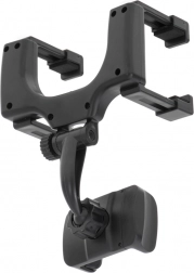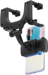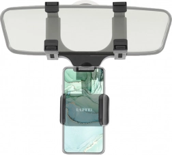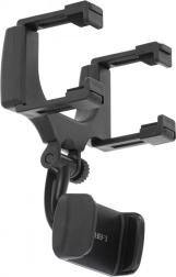 Telefonholderen er designet til nem fastgørelse på bagspejlet, hvilket sikrer fremragende stabilitet uden risiko for afmontering eller skade på ventilationsgitteret. Justerbare arme tillader tilpasning til forskellige bildesign.