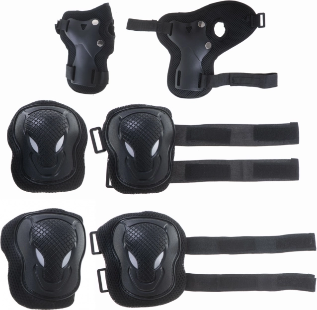 Beskyt dig selv under sportsaktiviteter med dette sæt beskyttende beskyttere til knæ, albuer og håndled. Designet sikrer sikkerhed og komfort, ideel til skateboarding eller cykling.