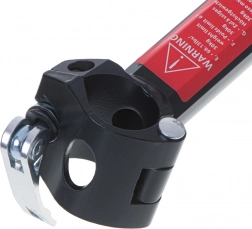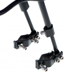 Teleskopiske stivere og en glidende platform muliggør præcis tilpasning til rammen. Kompatibilitet med sadelpinde Ø 28,6 mm / 27,2 mm gør den til et valg for mange cykeltyper.