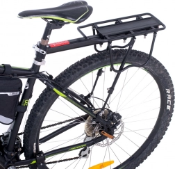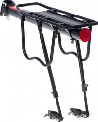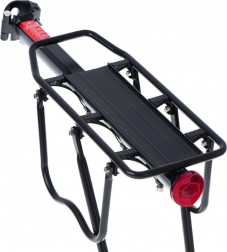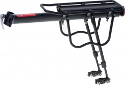 Montering og afmontering klares på et øjeblik takket være den solide klemme/hurtigudløser og det medfølgende monteringsudstyr. Sidebeskyttere holder tasker fri af egerne, og bagtil sørger en rød refleks for bedre synlighed i skumringen. I pakken finder du korpus med platform, sidestykker, teleskopiske stivere, skruer, beskyttelsesgummi og refleks.