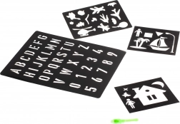 Sættet indeholder sorte plastskabeloner, som hjælper børn med let at skabe forskellige former og bogstaver.