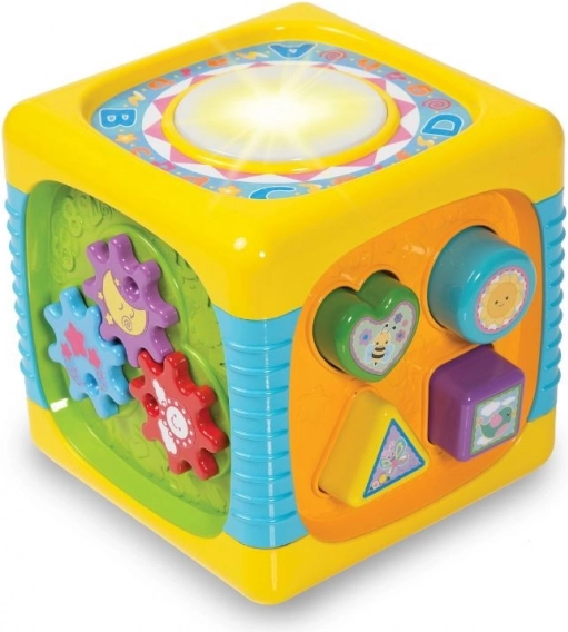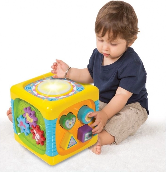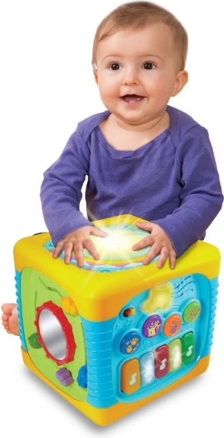 Hver side af kuben tilbyder dit lille barn masser af attraktioner og overraskelser, som vil fastholde opmærksomheden i lang tid. Legetøjet stimulerer alle barnets sanser og understøtter dets udvikling. Klare, livlige farver, behagelige lyde og også sjove effekter opmuntrer dit barn til leg. Denne kube er centrum for skøn leg i lang tid.