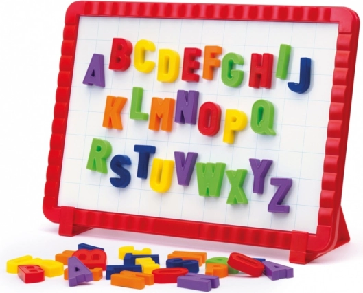 Sættet indeholder 48 store bogstaver og en dobbeltsidet magnetisk tavle.