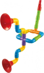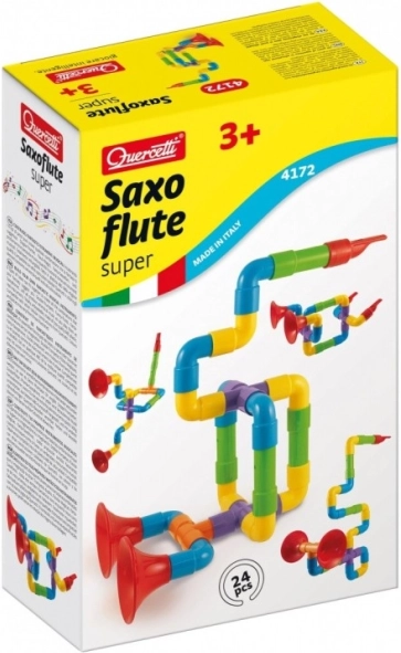 Børn kan med byggesættet Quercetti Saxoflute Super skabe deres egne musikinstrumenter, såsom saxofoner, fløjter og trompeter, af farverige plastikrør og stik. Sættet indeholder 24 dele, der muliggør forskellige kombinationer og former. Dette legetøj udvikler ikke blot kreativ tænkning, men også finmotorik og fantasi.