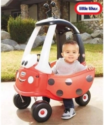 Den legendariske Cozy Coupe i et charmerende mariehønedesign er ideel til de første ture i haven og gåture med forældre. Børn kan drive bilen frem med egne ben, eller en voksen kan skubbe den som en vogn. Takket være den stabile konstruktion og gennemtænkte detaljer klarer selv mindre børn kørslen.