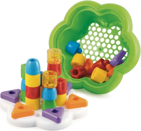 Byggesættet QUERCETTI Chunky Peggy er den ideelle første mosaik for børn fra 12 måneder. De store, farverige dele ligger behageligt i hånden, sættes let i den fleksible base og motiverer børn til at udforske farver, former og deres første konstruktioner. Når legen er slut, lægger du det hele ned i den elegante blomsterformede æske.