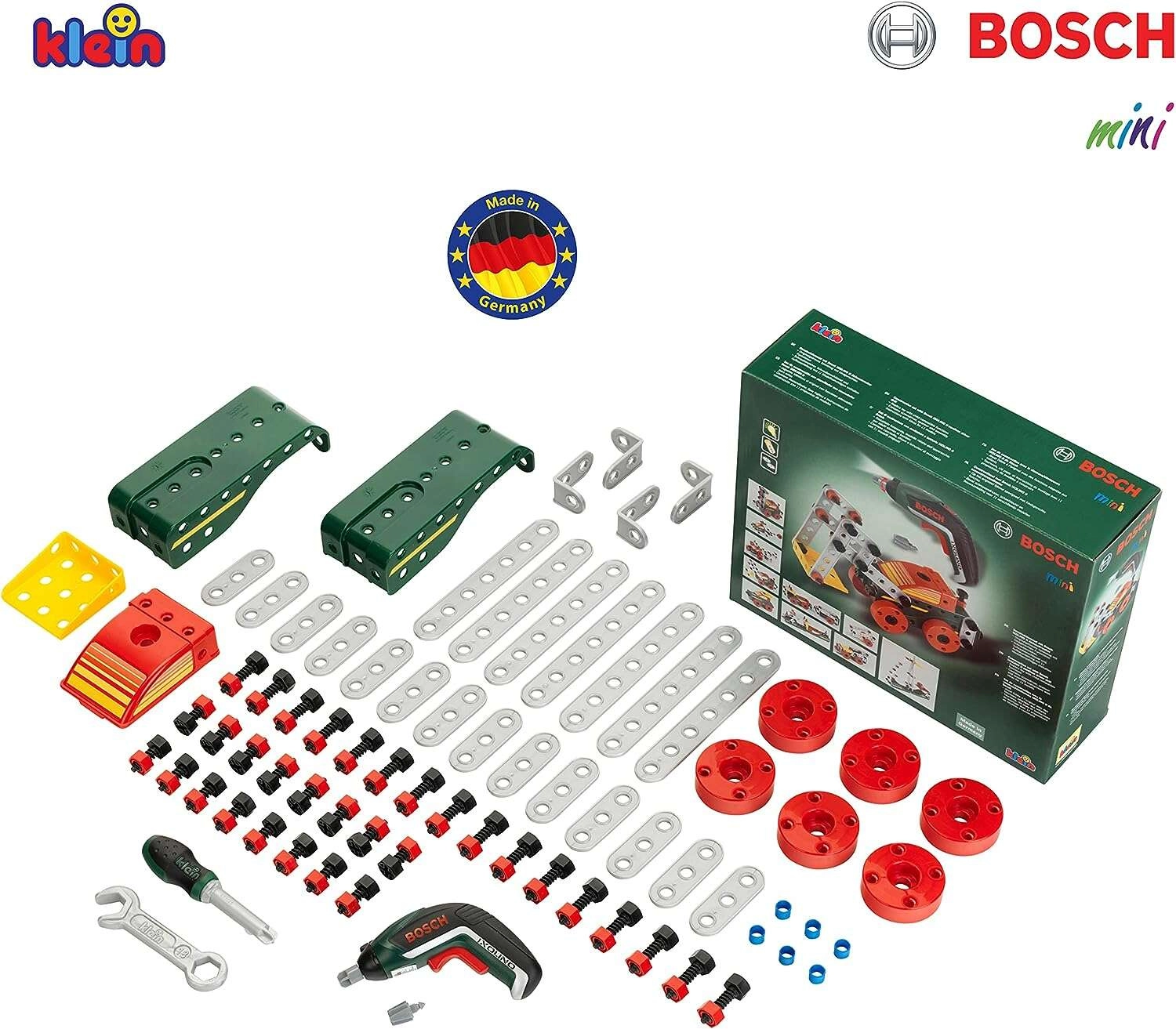 Børnebyggesæt fra serien BOSCH mini fra mærket KLEIN tilbyder en realistisk batteriskruetrækker BOSCH Ixolino og i alt 77 dele til kreativt byggeri. Byg op til 11 forskellige køretøjsmodeller, og udvikl finmotorik, logisk tænkning og fantasi. Et fremragende valg til små gør-det-selv-folk fra 3 år.