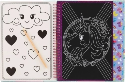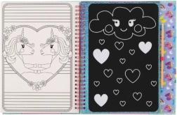 Skrabebogen med Enhjørningsmotiver tilbyder sjov og samtidig udvikler kreative evner. Takket være de hårde omslag og spiralbinding er den let at bladre igennem og ideel til rejser: