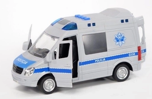 Detaljeret model af en politibil i målestok 1:16, der vil glæde små fans af redningstjenester. Den byder på realistiske lys- og lydeffekter, åbningsbare døre og en robust plastkonstruktion for sikker og langvarig leg. Takket være AG13-batterier med i pakken kan børn begynde at lege med det samme efter udpakning.