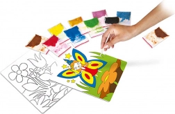 Den kreative leg med sandmaling består i gradvist at afdække de enkelte udskårne dele af billedet for at blotte den klæbrige overflade på det valgte fragment. Hvert afdækket fragment drysses med sand i en farve, der følger billedmønsteret angivet i vejledningen og på æsken.