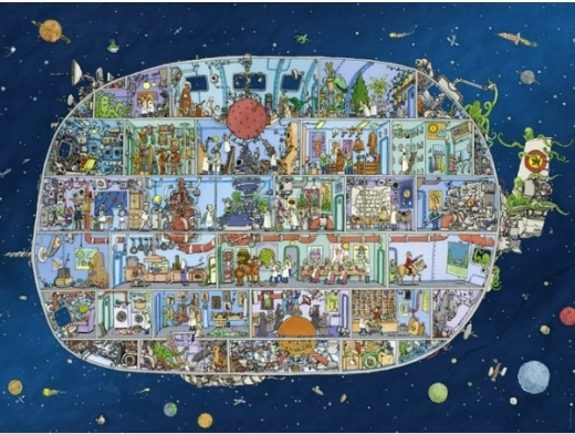 puslespil med grafik “Rumskib, Adolfsson (Puzzle+Plakat)”. Består af 1500 brikker. Når det er samlet, bliver billedet 80 x 60 cm.Grafikken viser flere scener fra bogelskeres liv.En sand lækkerbisken for alle, der elsker humoristiske puslespil.